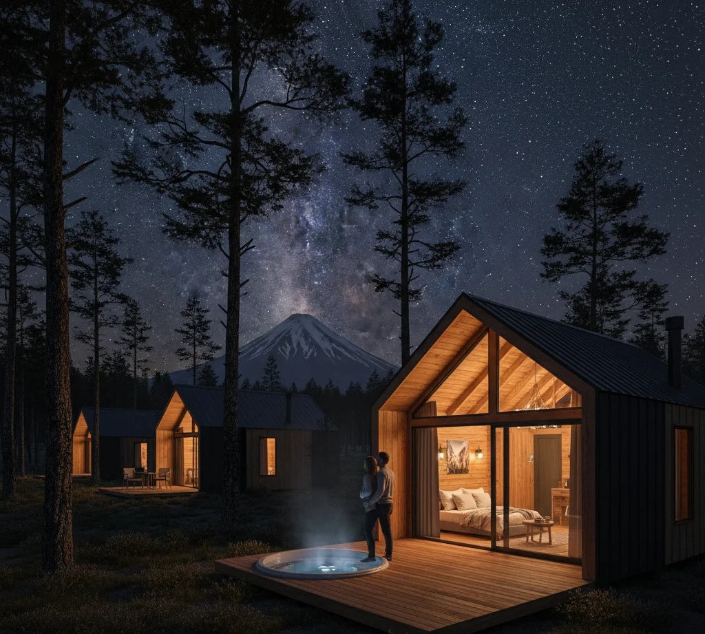 Una de las principales atracciones de Casas Los Hualles es la posibilidad de alojarte bajo un cielo lleno de estrellas. Imagina despertar por la mañana y encontrarte rodeado de la belleza natural del sur de Chile. Las cabañas están equipadas con ventanas panorámicas que ofrecen una vista espectacular del firmamento. Durante la noche, puedes disfrutar de actividades como fogatas al aire libre, donde compartir historias y contemplar la inmensidad del universo. Las noches en Coñaripe son particularmente mágicas, ya que la contaminación lumínica es mínima, permitiendo ver constelaciones que a menudo no son visibles en las ciudades.