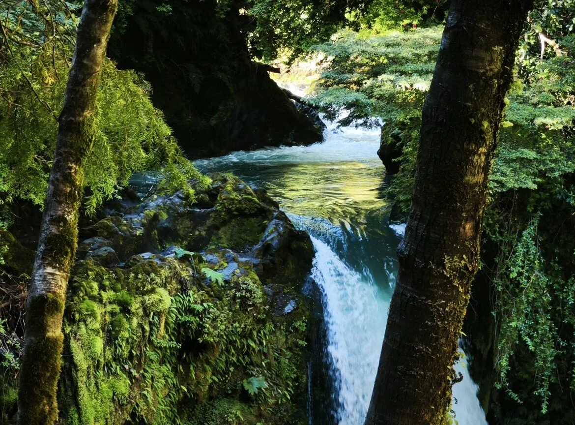 A pocos kilómetros, el Salto del Llancahue —una caída de 20 metros enclavada en roca volcánica— es visitable con recorridos de baja dificultad. El sendero, rodeado de arrayanes y coigües, luce en marzo con una luz única y sin las largas filas del verano.